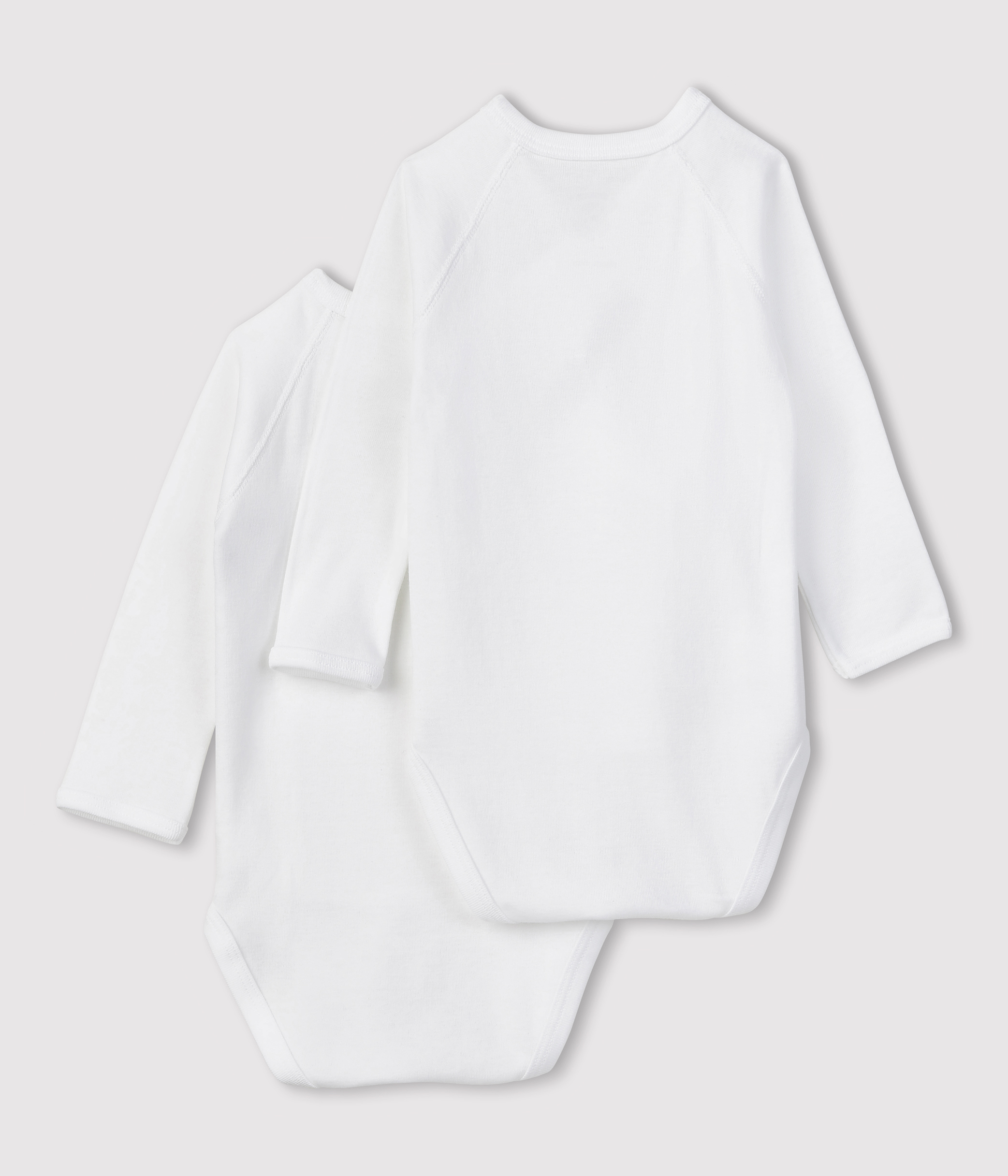 - Set of 2 long-sleeved newborn bodysuits in Petit Bateau's iconic rib knit.