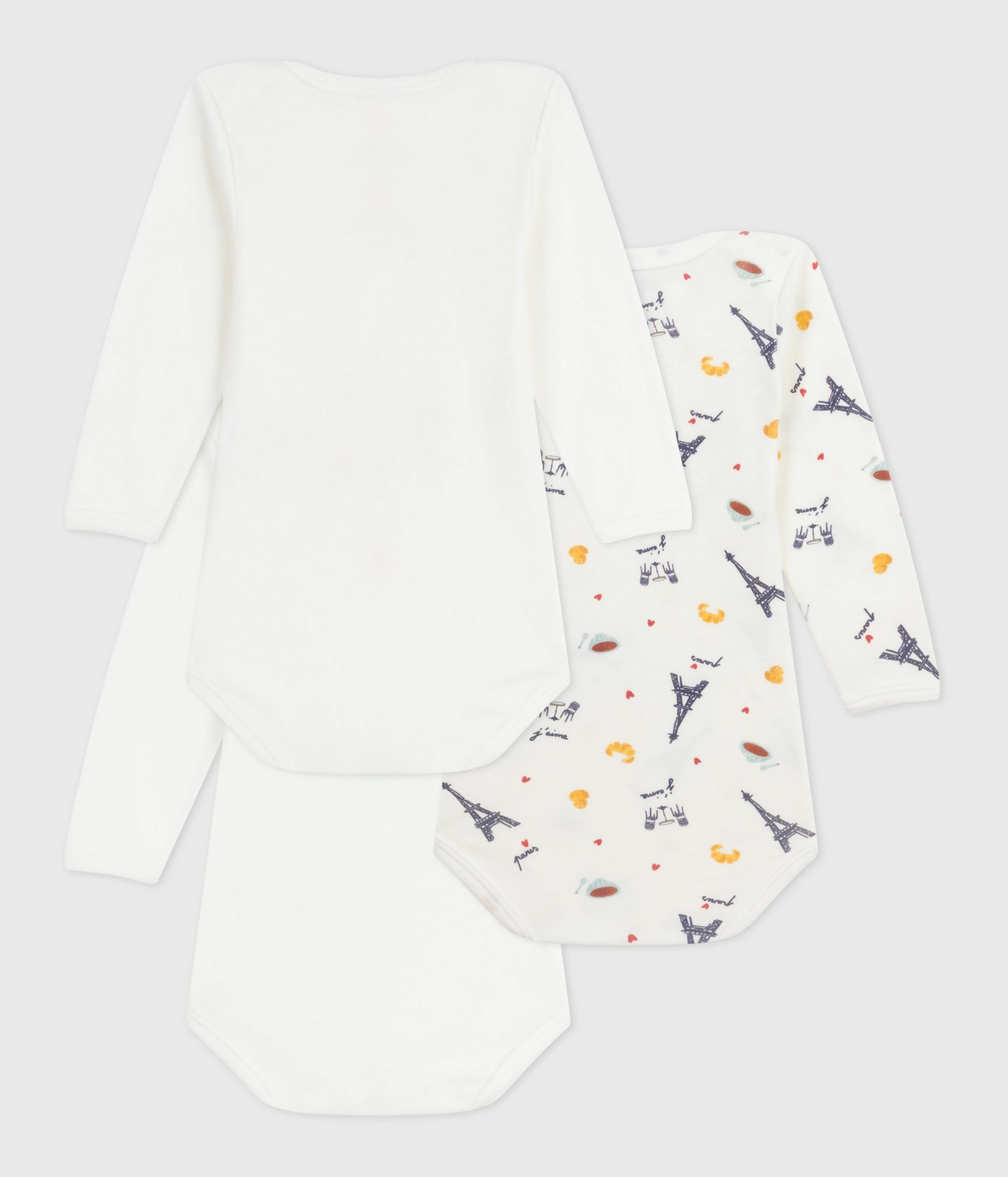 Pack of babies' long-sleeved Paris-print cotton bodies