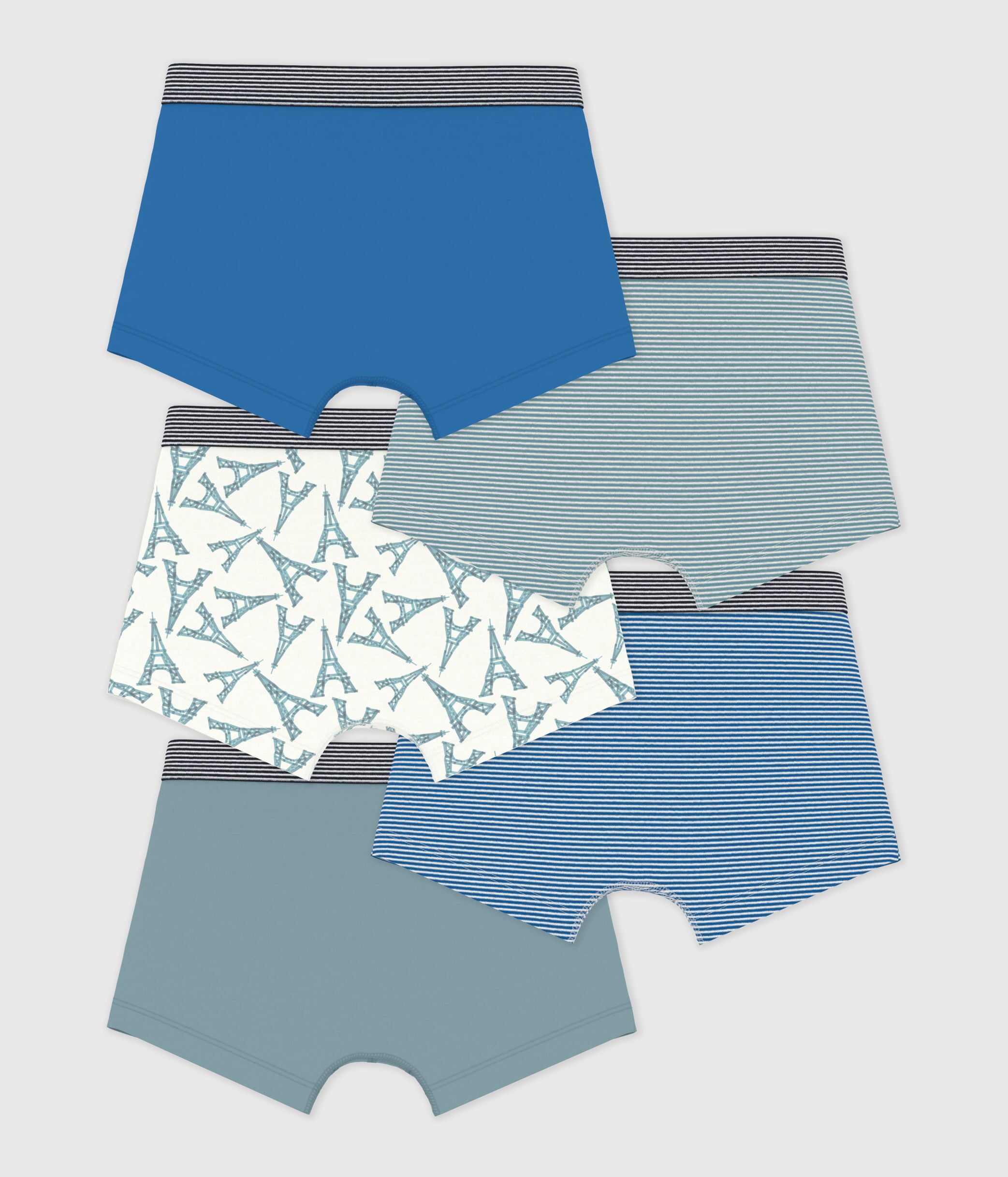 - Pack of 5 pairs of boys' boxers in 1X1 rib, a comfy, stretchy fabric.