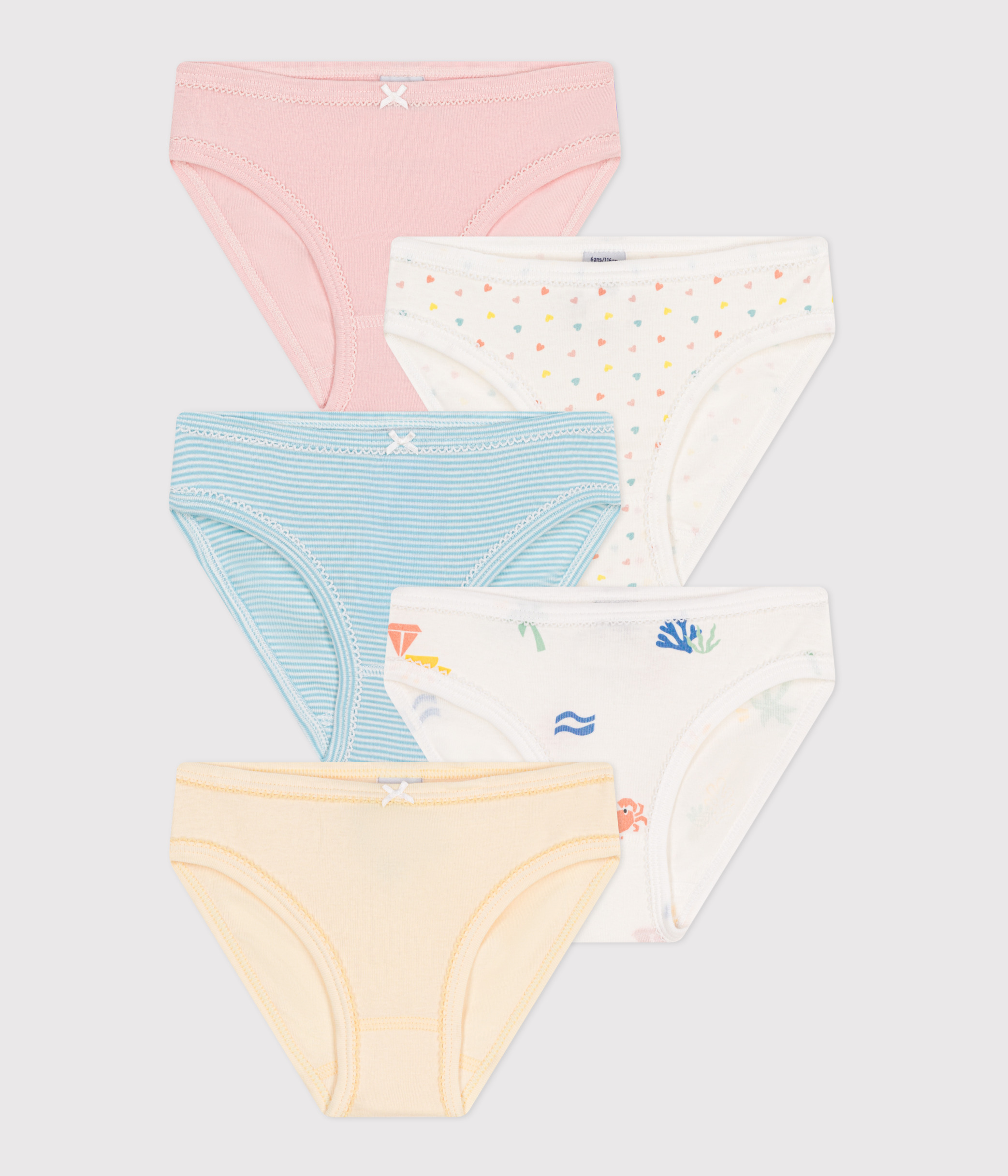Set of 5 children's printed cotton panties
