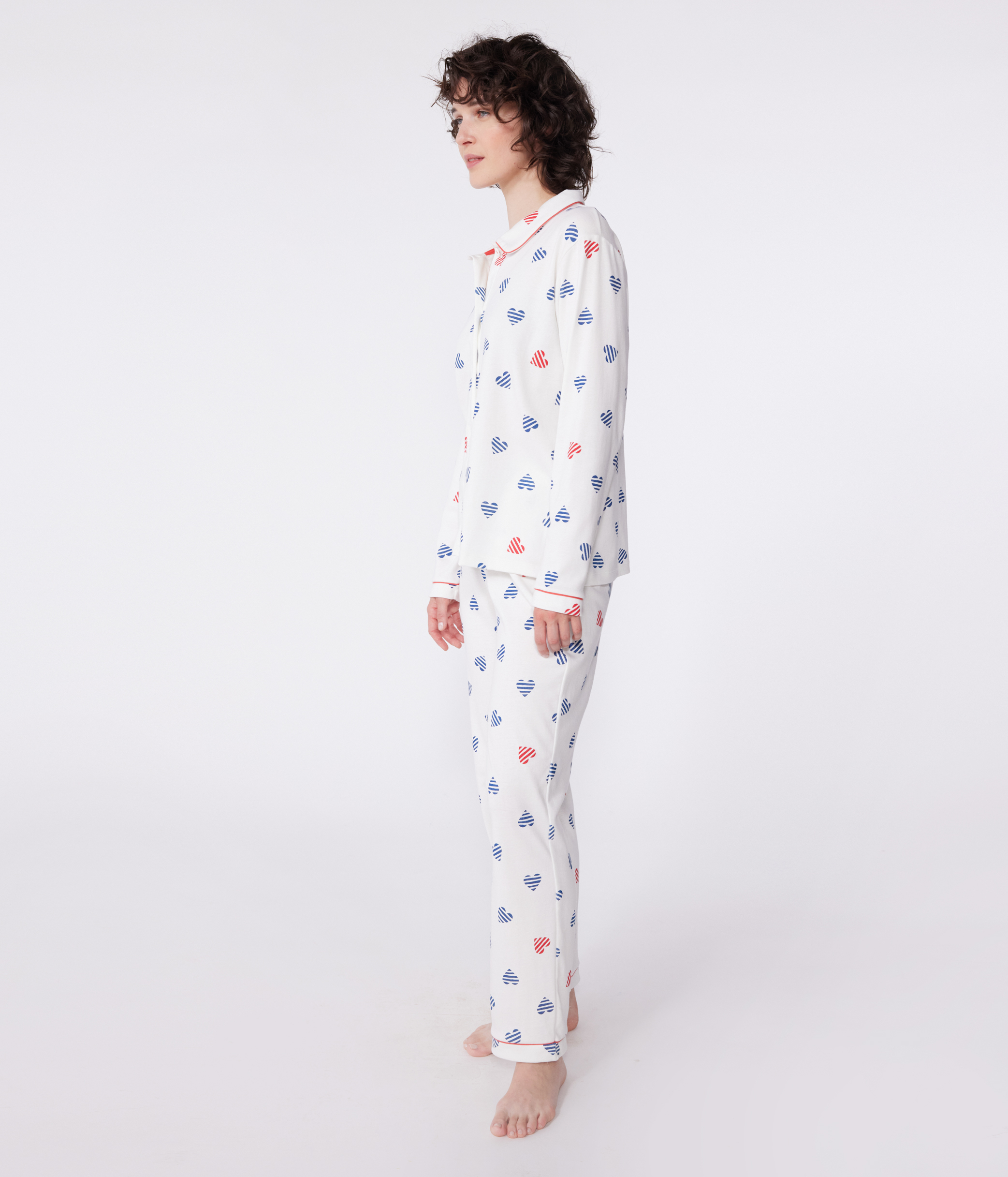 Women's buttoned heart print cotton pyjamas