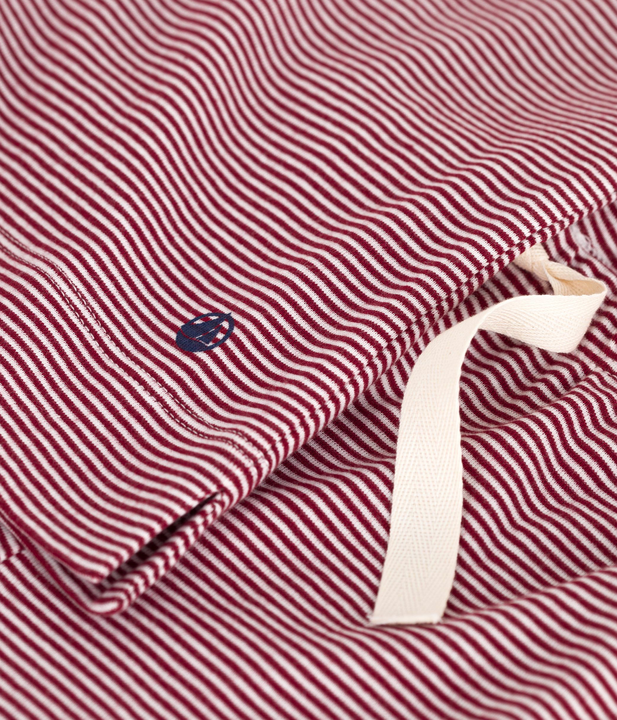 - Pyjamas in red pinstriped 1x1 rib knit, the iconic Petit Bateau fabric.