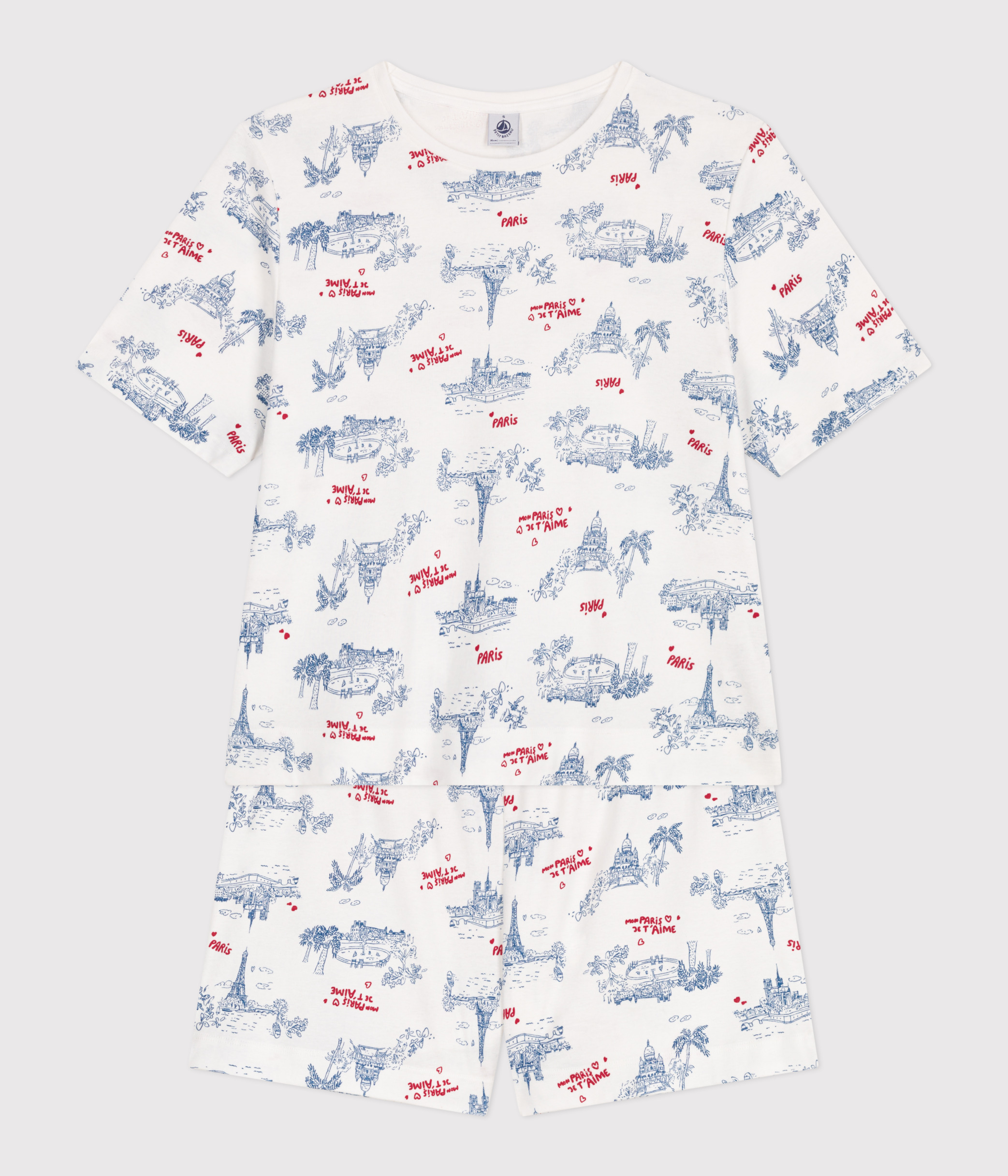 - These short pyjamas feature a playful print celebrating the monuments in Paris.