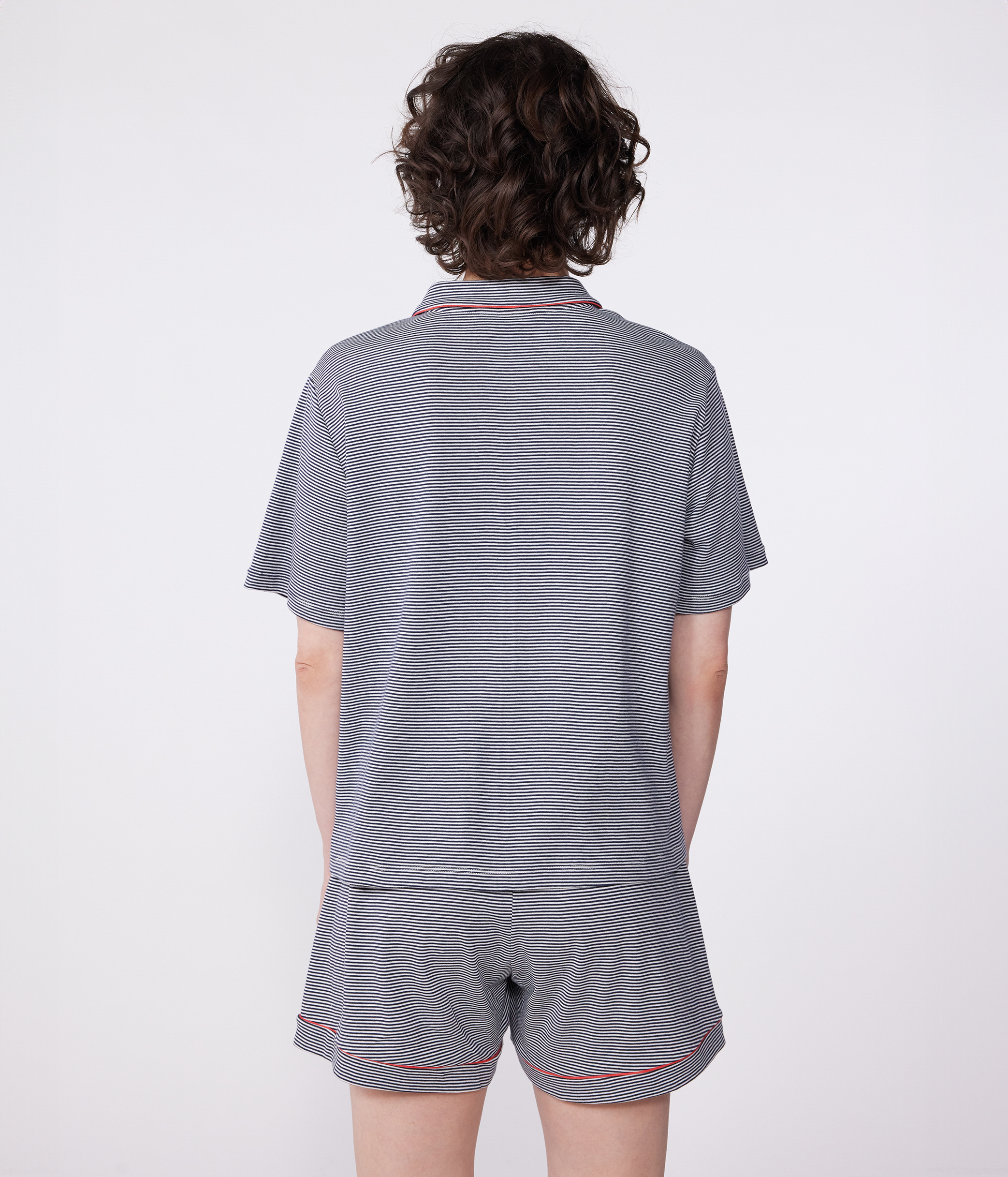 Women's iconic short pyjamas in pinstripe 1X1 rib knit, a stretchy, comfortable fabric.