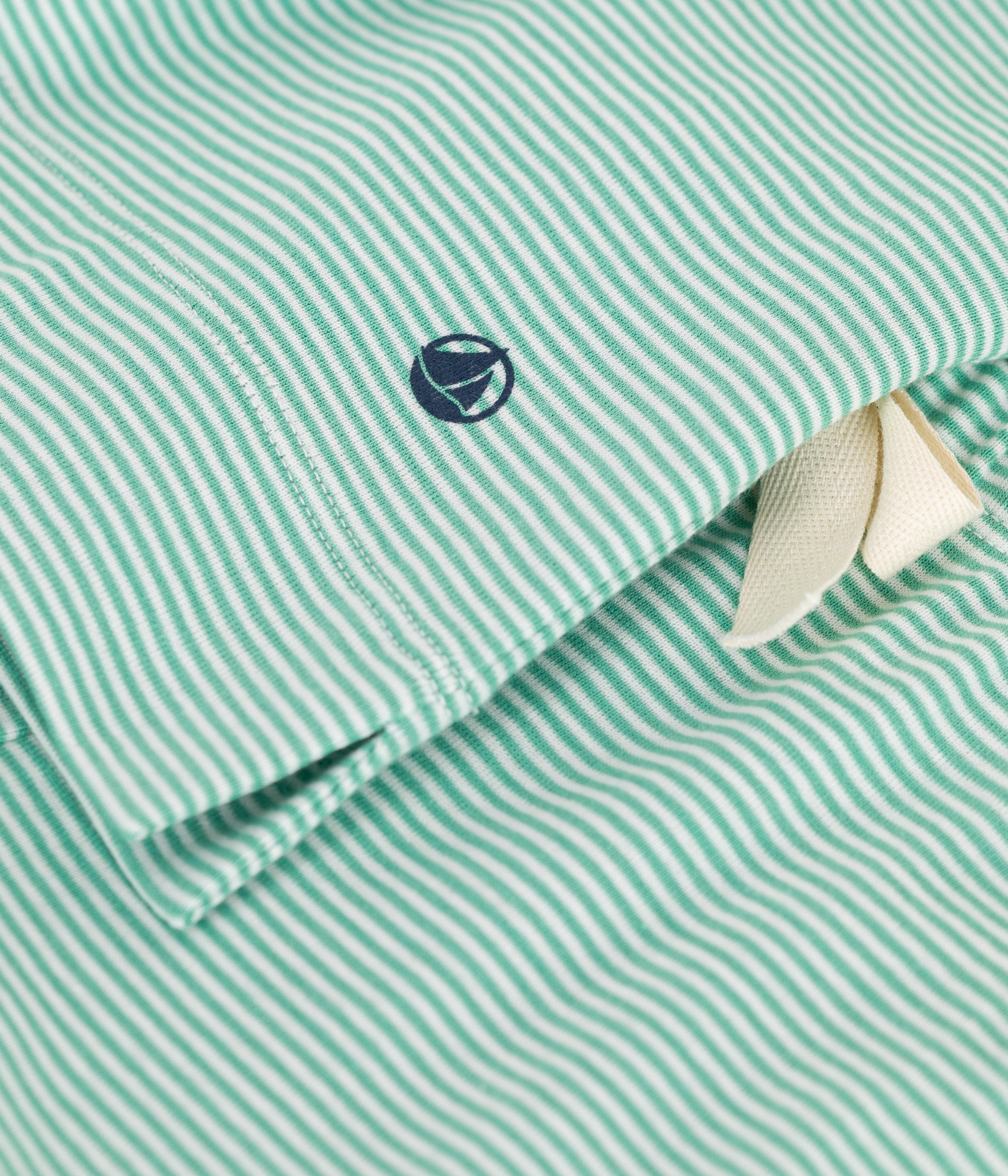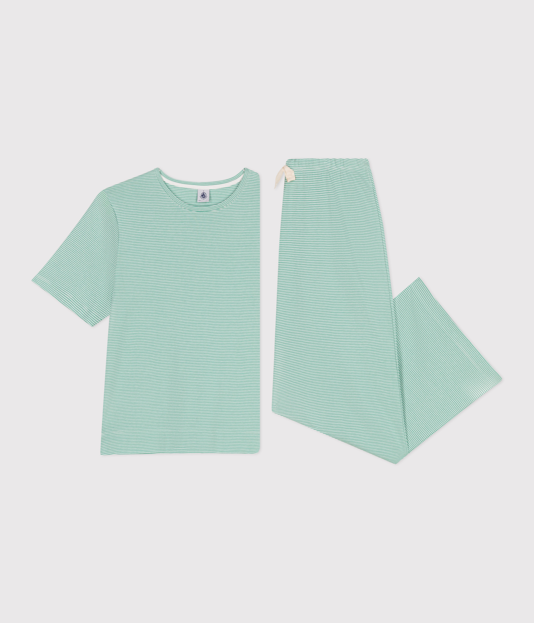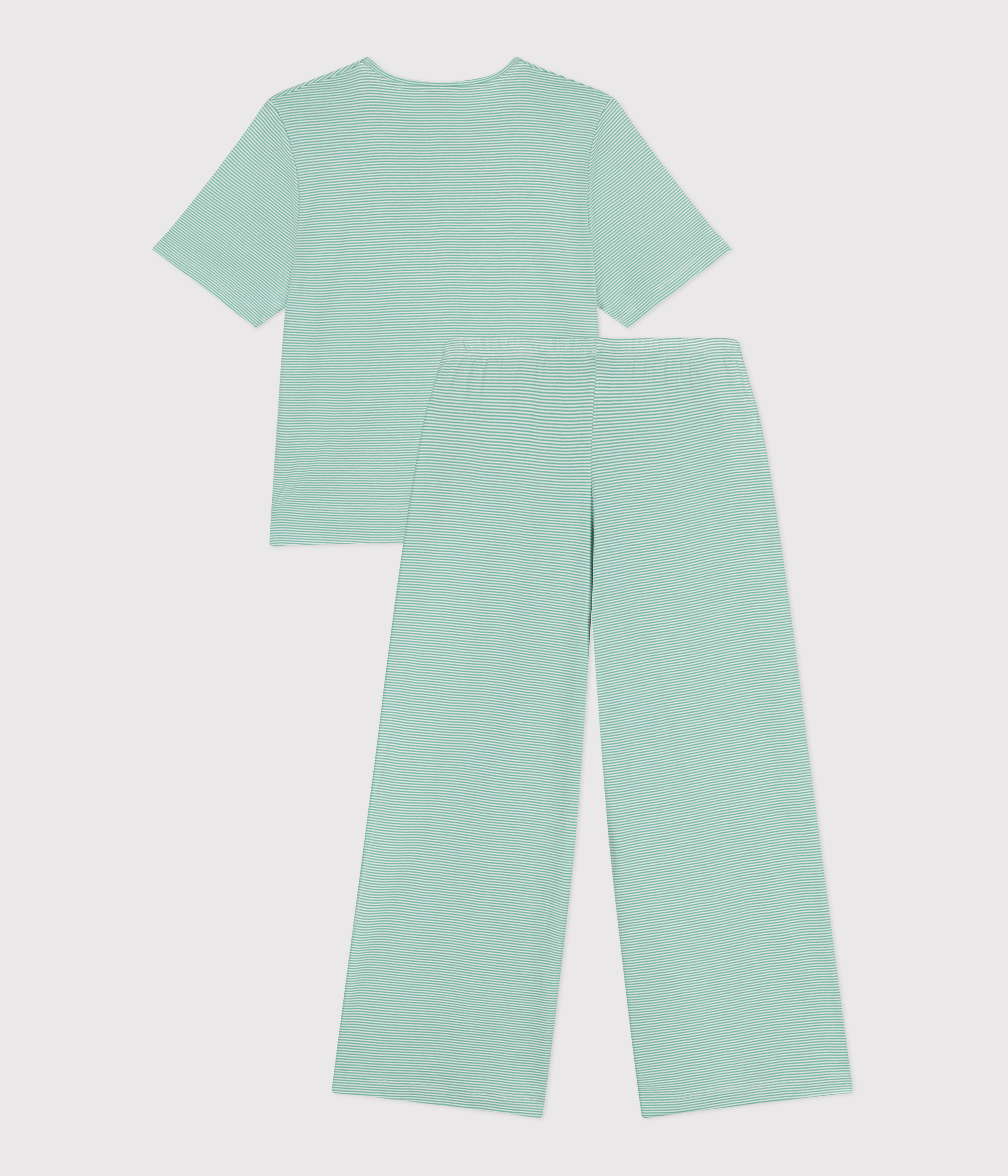 - Pyjamas in green pinstriped 1x1 rib knit, Petit Bateau's iconic fabric.